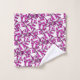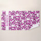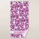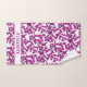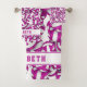 This unique volleyball themed towel set features a random pattern of varied size fuchsia and white stylised volleyballs turned every which way on a customisable white background - personalise the bath towel & hand towel with her name - by katz_d_zynes