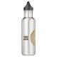 Personalise this stainless steel volleyball water bottle with her name and jersey number; features the word "Volleyball" orientated vertically over a gold, digitally textured volleyball graphic - text is customisable white and brown/grey - by katz_d_zynes