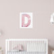 Sweet girl's nursery initial (Letter D) pink watercolor pattern background. Simple girl's room, baby name letter.