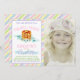 Pancakes and pajama photo birthday party invitations with stack of pancakes on a pretty pastel background. This pancakes and pyjamas birthday party invitation is easily customised for your event by simply adding your photo and details. You can also change the white background colour behind the stripes.