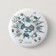 This fun button features an "explosion" of varied size teal, grey and white soccer balls and grey, teal and white star shapes - a pattern of tiny polka dots covers the teal star - customise with the athlete's name & jersey number - by katz_d_zynes