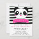 Adorable black and white stripe with smiling panda birthday party invitations for girls. Customise with your party details. Visit our store to see all coordinating party supplies in this design + our entire collection of invitations.