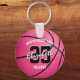 This girls' basketball keychain features a simple hot pink basketball graphic with overlying pink, black, white text - easily customize this keychain with the player's name in a signature (or autograph) style font atop the player's jersey number (in a varsity letter style font) at the center of the keychain; the school's name and team mascot name encircle the name and jersey number, also in a varsity letter style font - by katz_d_zynes | see more girls' basketball gifts >>> https://www.zazzle.com/collections/119219336971589589