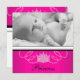 Adorable hot pink princess crown baby girl princess birth announcements. This elegant hot pink and black princess baby girl birth announcement is simple and elegant and is easy to customise by simply choosing the "Customise it!" button to begin adding your photo, font style, font size & colour, and wording. Please note - all of the invitation designs you will find on Zazzle are printed graphics on flat paper stock with no actual jewels, bows, raised, embossed, or added parts or pieces.