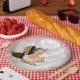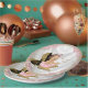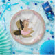Pink and gold high heel shoe baby shower invitation with adorable dark hair baby girl wearing a pink tutu and string of pearls sitting on a pair of elegant gold glitter high heel shoes on a pretty pink and gold satin background. These adorable pink and gold baby shower paper plates are easily customised with text, or you can remove the satin background and add your own background colour. This is a printed design with no real glitter, pearls, satin, etc.