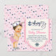 Girls Pink Navy Blue Nautical Baby Shower Invitation