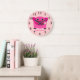 This cute pink pig wall clock is bright and fun and will look great in a girl's bedroom, nursery or playroom. You can easily change the name to personalise the clock, or simply remove it to leave blank.