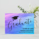 This modern Graduation Announcement card is decorated with a pink, blue and purple background and stylish typography.