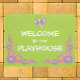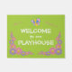 Welcome to our Playhouse doormat with girly flowers and butterfly for children's play house. Customise the girls names, or delete if unneeded. Soft pastel colour scheme has flowers with heart shaped petals and a smiling butterfly. Names in pink script can be edited to another font or colour if desired.