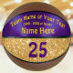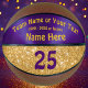 Girls Purple and Gold Personalised Basketball Ball. 4 Text Boxes to Type in Your Text or Delete. CALL Designer Linda: 239-949-9090 to CHANGE to Your Team COLORS or Basketball Themed Bedroom. Shine with sparkly faux Gold Glitter and Shades of Satin look Purple Basketball. Choose Mini Basketball or Full Size Personalised Basketball Ball.