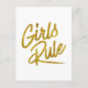 Girls Rule Gold Faux Foil Metallic Glitter Quote Postcard