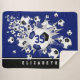 This cool girl's soccer themed Sherpa fleece blanket features an "explosion" of blue, black and white soccer balls in varying sizes and grey and blue star shapes - the blue star has a tiny pattern of white polka dots - customise with player's name and jersey number - the blue background and black colour strip at the bottom edge are customisable - katz_d_zynes