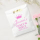 Girl's sweet sixteen 16th Birthday party custom Favour Bags personalised with name and date. Classy design for sixteenth Birthday celebration of teen girl. Elegant script text and princess crown. Sixteenth Birthday celebration design for sweets, pastry and more. Pink and white colours.