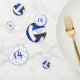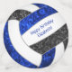 This cute volleyball birthday party confetti features the image of a stylised volleyball with dark blue, black and white panels on the front of each confetti piece, upon which you can customise the text - personalise her age on the back atop a simple white volleyball graphic - the black and blue panels of the volleyball are blended with a subtle floral kaleidoscopic pattern for a textured appearance that is artsy and girly - by katz_d_zynes