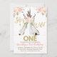 Sweet girl's tribal teepee wild one first birthday invitation featuring a lovely teepee, some pink floral arrangements and feathers. This tribal themed first birthday invitation is sure to set the scene for your little girl's wild one themed first birthday party.