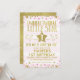 This cute twinkle twinkle little star 1st birthday invitation features some bright pink and faux gold foil stars at the top and bottom of the invitation. The background is an off white and pale pink pattern. The back of the invitation features a faux gold glitter texture. The design also includes a large faux gold star and some decorative faux gold swirls. This girl's twinkle twinkle little star birthday invitation is ready to be personalised. For more designs in this theme please visit the store.