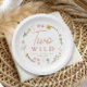 These cute and whimsical girls’ birthday paper plates features a pink boho wildflower wreath with “two wild” in elegant typography. A perfect finishing touch for spring or summer girls’ birthday party tables.