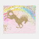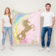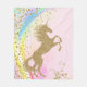 Unicorn blanket with beautiful gold unicorn on a pastel pink rainbow background. This pretty unicorn blanket is easily customised by simply adding the text of your choice in the font style you prefer. You can also change the background colour on this adorable unicorn blanket. This is a printed design with no real glitter, foil, etc.