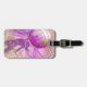 Volleyball luggage tag for her featuring girly volleyball graphics and silhouetted female volleyball player jumping at the net in a pink and purple colour theme - customise with her info - by katz_d_zynes