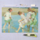 This design features a painting by the American Impressionist painter Edward Henry Potthast (1857–1927). It shows a group of four girls dressed in fine clothes as they walk through puddles of water at the beach. They are enjoying the warm weather of summer. One girl is lifting her leg as she cools her feet in the water, while others are standing or walking in the water. It is a beautiful image of the innocent joys of childhood. The original artwork was painted by E.H. Potthast in 1910.