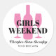 Girls weekend away trip wine tasting party Classic Round Sticker . Custom stickers and envelope seals. Add your own destination and funny quote. Cheaper than therapy. Wine glass and bottle silhouette design for bachelorette party, bridal shower, Birthday, wedding, vineyard gathering, winery trip, vacation, holiday, getaway, girls night out etc. Classy design with elegant text template. Pink and black colours customisable.