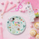 This whimsical and magical Two the Sea paper plate design features a cute mermaid under-the-sea illustration with fish and seaweed. Perfect for a mermaid 2nd birthday, pool party, or splash party celebration, these plates add a fun and coordinated touch to your child’s birthday table.