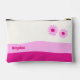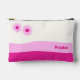 A girl's accessory pouch for essentials. White and pink. With your name on both sides and matching daisies.