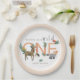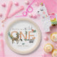 This cute and whimsical 'Wild One' 1st Birthday plate design features an adorable woodland animal illustration, with a deer, hedgehog, badger, owl, greenery, and flowers, with pink around the edges. The design also provides space for you to add your girl's name. The perfect minimalist design for any one-year-old's first birthday!