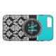Girly Aqua Black Damask Your Monogram Name Case-Mate iPhone Case