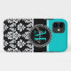 Girly Aqua Black Damask Your Monogram Name Case-Mate iPhone Case