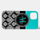 Girly Aqua Black Damask Your Monogram Name Case-Mate iPhone Case