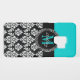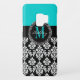 Girly Aqua Black Damask Your Monogram Name Case-Mate Samsung Galaxy Case
