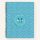 Girly aqua blue dots pattern notebook with blue monogram and white name inside an abstract circle.