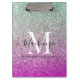Girly Aqua Blue Pink Ombre Glitter Monogram Name Clipboard