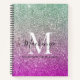 Girly Aqua Blue Pink Ombre Glitter Monogram Name Notebook