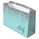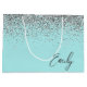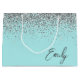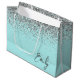 Girly Aqua Blue Silver Glitter Monogram Large Gift Bag