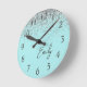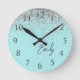 Girly Aqua Blue Silver Glitter Monogram Round Clock