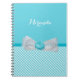 Girly Aqua Gingham Cute Pearls Rose Bow With Name Notebook