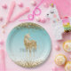 Girly Aqua Gold Confetti Glitter Unicorn Paper Plate