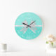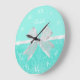Girly Aqua Turquoise Damask White Ribbon With Name Large Clock