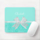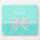 Girly Aqua Turquoise Damask White Ribbon With Name Mouse Mat