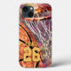 Girly grungy basketball Case-Mate iPhone Case with a floral touch in shades of pink purple and of course orange plus customisable jersey number and name by katz_d_zynes
