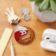 This sporty basketball keychain for girls with custom red and white team colors features a basketball graphic with easily customizable player name and jersey number plus school name and mascot name - two of the basketball's panels have an artsy textured appearance, one blended with red and the other blended with white - the player's jersey number and team mascot name are in a varsity style font, and the player's name and school name are in a girly script style font - by katz_d_zynes