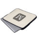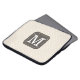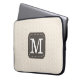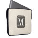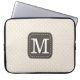 Stylish laptop sleeve with custom monogram on ivory beige background.