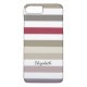 A neutral variegated beige and red wide horizontal striped Barely There iPhone 6 Plus Case in beige, taupe, dark red, and white striped pattern. Personalise this modern and preppy design by adding your name.