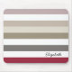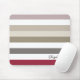 A neutral variegated beige and red wide horizontal striped mousepad in beige, taupe, dark red, and white striped pattern. Personalise this modern and preppy design by adding your name.