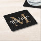 Girly Black Gold Monogram Elegant Modern Script Square Paper Coaster