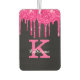 Girly Black Hot Pink Glitter Drips Monogram Name Car Air Freshener