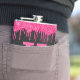 This trendy and unique glam girly design features hot pink fuchsia magenta glitter drips at the top and a large customisable monogram in bright pink in the centre in popular serif typography along with a customisable name in white in popular script with a hand-lettered look. The background includes brushed charcoal grey black onyx metal for added sparkle. You can personalise this item by changing the monogram and name in the product template.