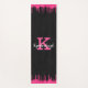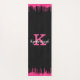 Girly Black Hot Pink Glitter Drips Monogram Name Yoga Mat